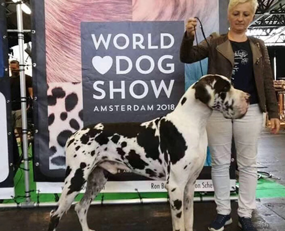 大丹犬(丹麥——布達(dá)佩斯)布達(dá)佩斯的******犬展,沒有留在現(xiàn)場觀看,但是后來跟犬主聊天,他的寶寶全場******,為你鼓掌。
